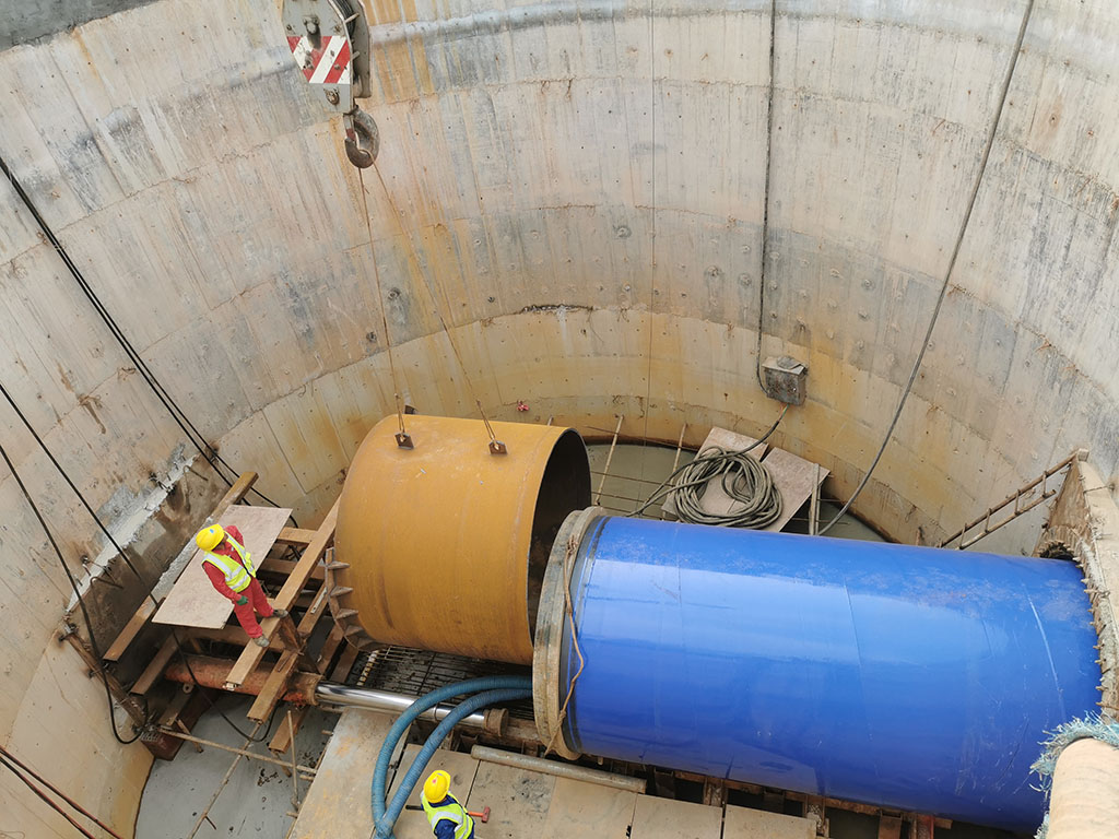 三号渠顶管工程设有工作井和接收井各1座,管道从三号渠南侧工作井开始顶进穿越三号渠,到达北侧接收井后结束,顶管长度100米,施工难度较大。为确保顶管安全准确,365英国上市公司组织参建各方技术人员对顶管范围内的地下管线进行详细调查,结合工程现场水文地质认真研究优化施工工艺和流程,精准设置接收井和铺设位置及走向等,在施工方案经专家评审通过后方开始施工。顶管施工过程中,365英国上市公司严格执行安全质量责任制度,各参建单位认真履职,对顶管前进方向和标高等全面管控。经努力,顶管精准抵达接收井预留洞口,完美接合,顺利完成顶管出洞。