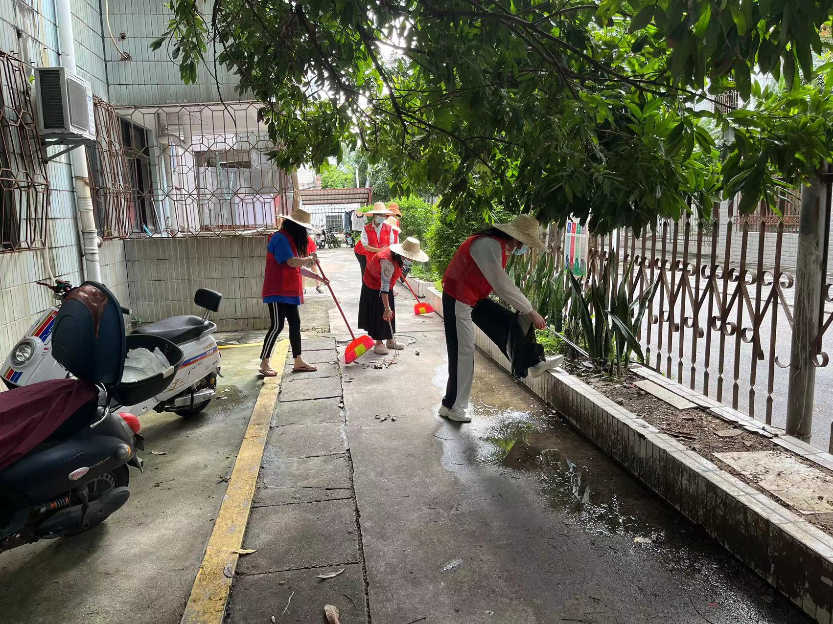 由于连日暴雨,小区内部分落叶、杂物、烟头等垃圾都粘连了一起,给清扫工作带来了一定困难。 志愿者们拿着扫把、簸箕、钳子等工具,认真清扫小区卫生,捡拾草丛杂物,清理卫生死角烟头,让小区面貌焕然一新。志愿者们在清理过程中不忘劝导居民不要乱扔垃圾,保持环境卫生整洁,以实际行动为创卫复审助力。