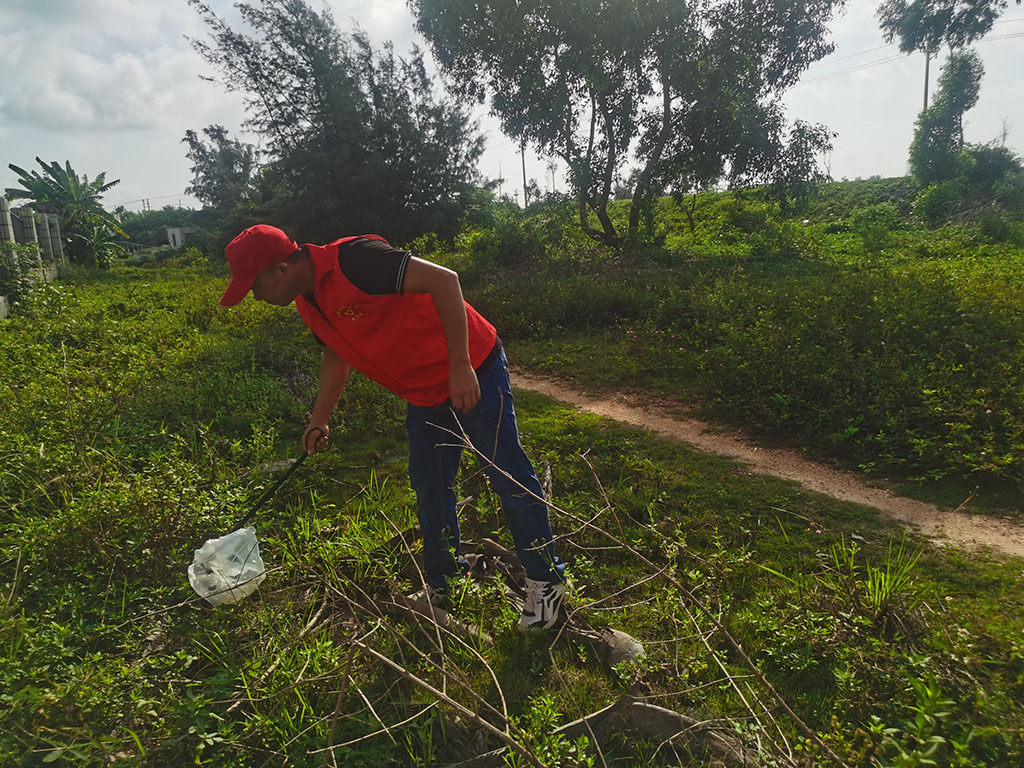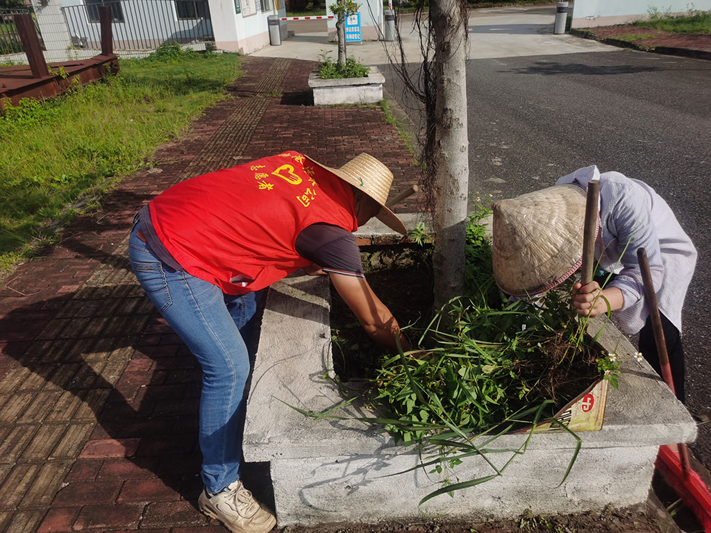 烈日炎炎下,志愿者们分工明确,有的用铁铲清除道路两旁的杂草,有的用夹子将散落在草坪上的塑料袋捡走,有的用扫把清扫道路上的沙石、垃圾、烟头等,甚至有的直接用双手拔除绿化槽里的杂草。即使汗水浸透了全身,志愿者们依然铆足干劲、齐心协力搞好环境卫生整治工作,用实际行动为创建国家卫生城市复审工作贡献力量,以这一特殊方式迎接庆祝党的102岁生日。