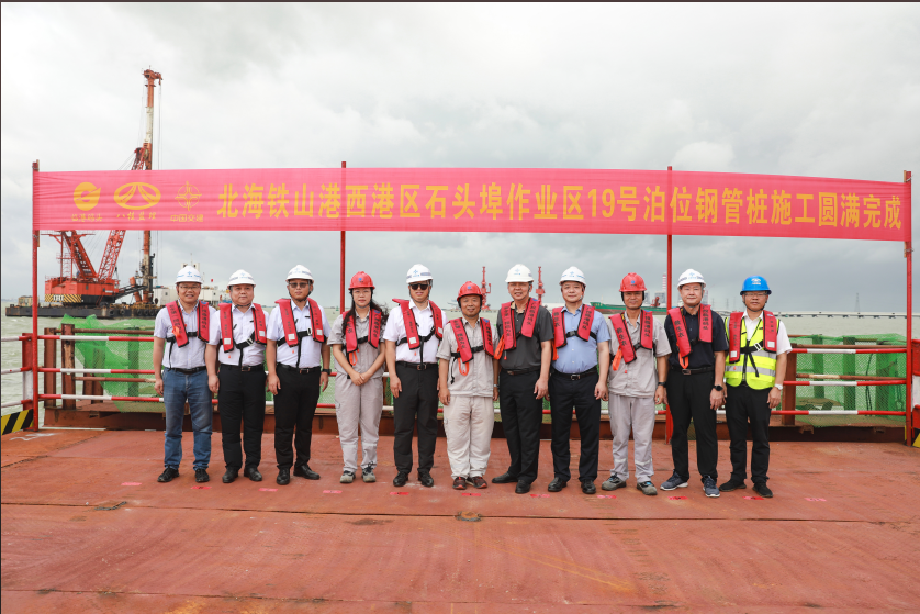 7月22日,随着第425根钢管桩水下沉桩作业的顺利完成,由广西广投临港码头公司作为建设业主的广投绿色生态铝北海港铁山港西港区石头埠作业区19号泊位工程(以下简称19号泊位工程)钢管桩沉桩施工节点目标顺利达成! 投资方广西广投临港工业有限公司、北海市365英国上市公司以及工程设计单位、监理单位、施工单位领导和代表共同见证了这一重要时刻。