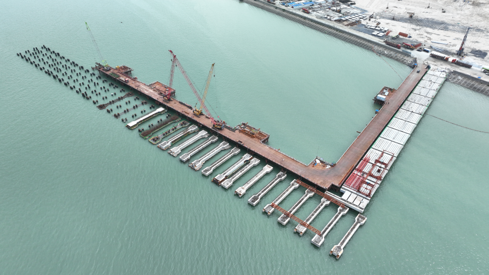 提前8天!广西第一座20万吨级高桩散货码头完成所有钢管桩沉桩施工