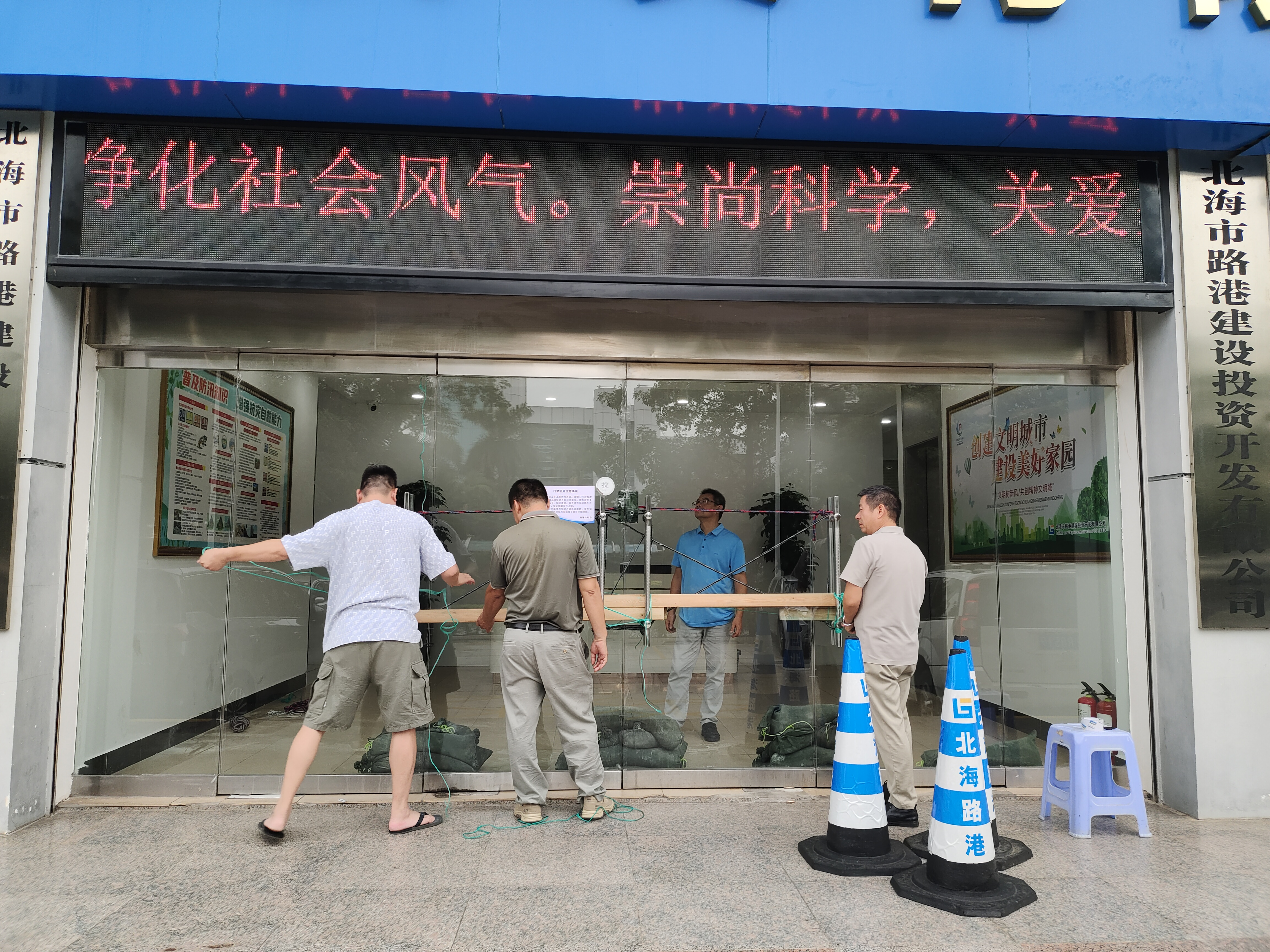受今年第11号超强台风“摩羯”影响,9月7日以来我市出现强降雨和大风等极端天气,365英国上市公司积极应对、迅速行动,压紧压实防汛防台风责任,全力以赴做好台风“摩羯”防御及灾后恢复工作。台风“摩羯”预警发布之后,公司沈飞董事长、李忠总经理及孙宗文副总经理第一时间组成检查组对公司市区办公区、各子公司、各在建项目开展了防汛防台风专项安全检查。公司全体员工严阵以待,在台风来临前积极做好隐患排查、人员转移、物资准备等工作,在台风过境时重点岗位坚持做好24小时值班,确保灾情险情的预警叫应、巡查避险以及信息报送工作。在台风过境后,现场人员第一时间对各子公司、各在建项目进行巡查,组织100多人及10多台机械设备开展风后生产恢复,对吹倒的廉州湾大道、向海大道130多棵树木进行扶正,对破损的安全防护设施及围栏进行修复,及时消除安全隐患,切实保障人民群众生产生活安全有序。