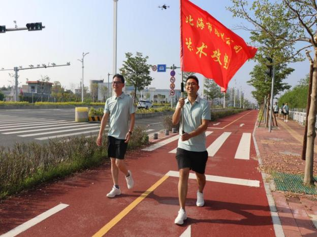参观结束后,在清新的空气里,海涛声声中,大家迈着轻快的步伐,行走在廉州湾大道的享受着大自然的美好与宁静。大家以饱满的热情,昂扬的姿态,有序地按照指定的路线,沿着规划的健身步道前进,还边走边清理海滩上的垃圾。一路上,大家意气风发、互相鼓励,一边感受运动带给身心的愉悦,一边结伴而行增进彼此之间的感情,增强团队合作力量。