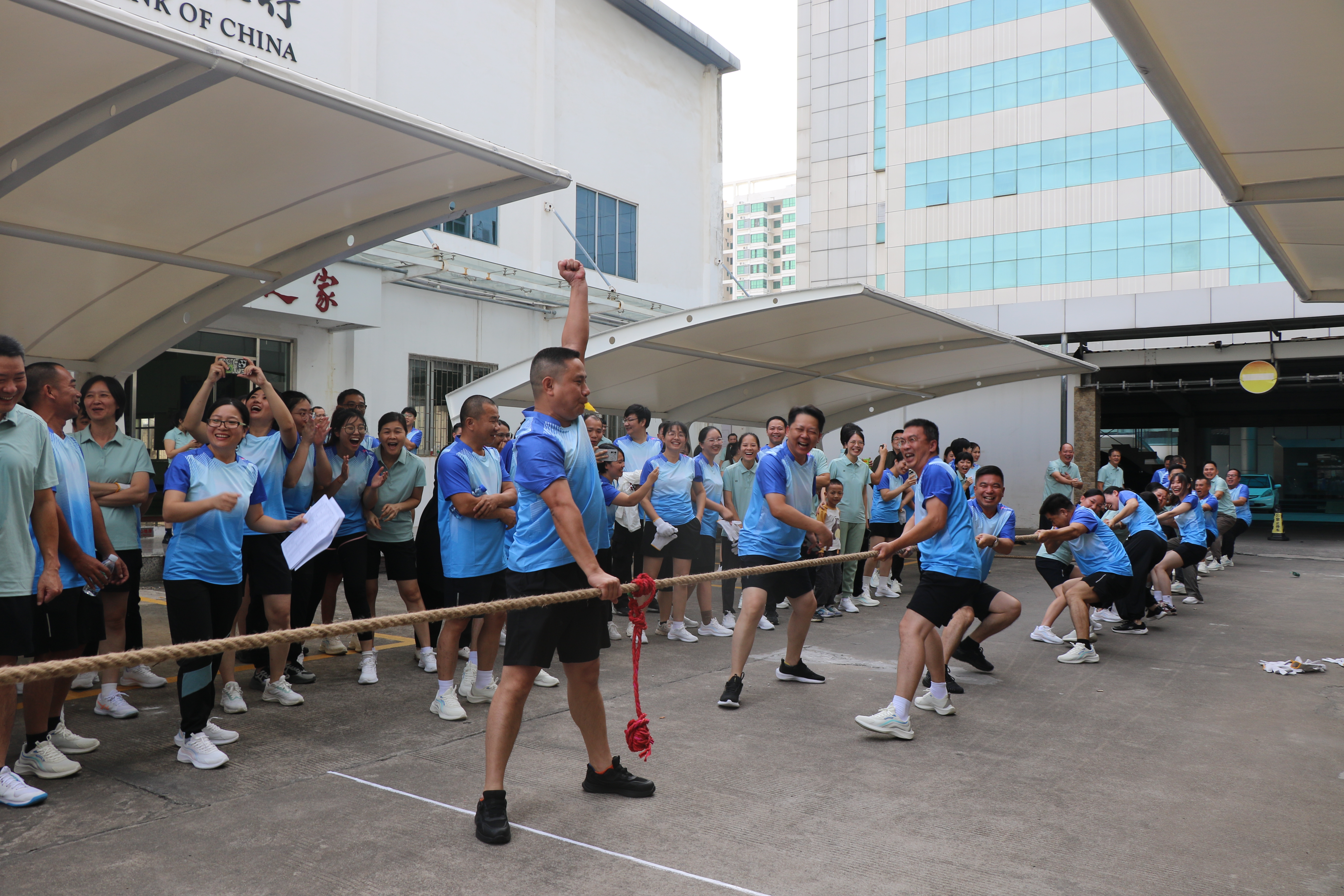 拔河比赛8支队伍分成四组展开对决,职工们握紧绳子,双脚蹬地,身体后倾,红绳在双方力量的拉扯下左右移动,大家心往一处想,劲往一处使,展现出强大的凝聚力。