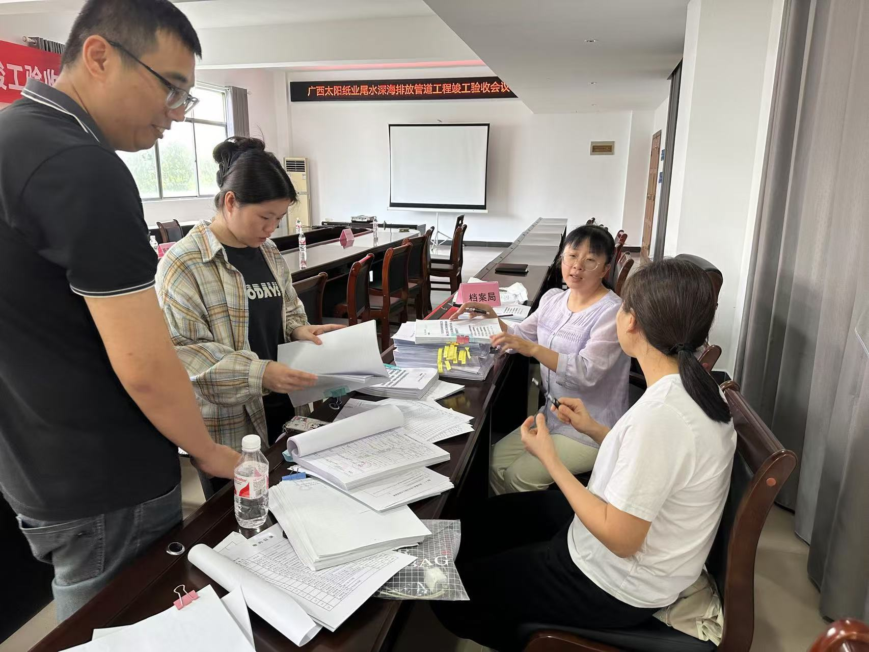 验收组严格按照竣工验收程序,深入查看现场、细致查阅资料和听取参建各方汇报,一致认为:广西太阳纸业尾水深海排放管道工程已按设计要求和合同约定的内容完成,工程实体质量符合合同要求,工程资料基本齐全,工程质量核验合格,同意竣工验收。