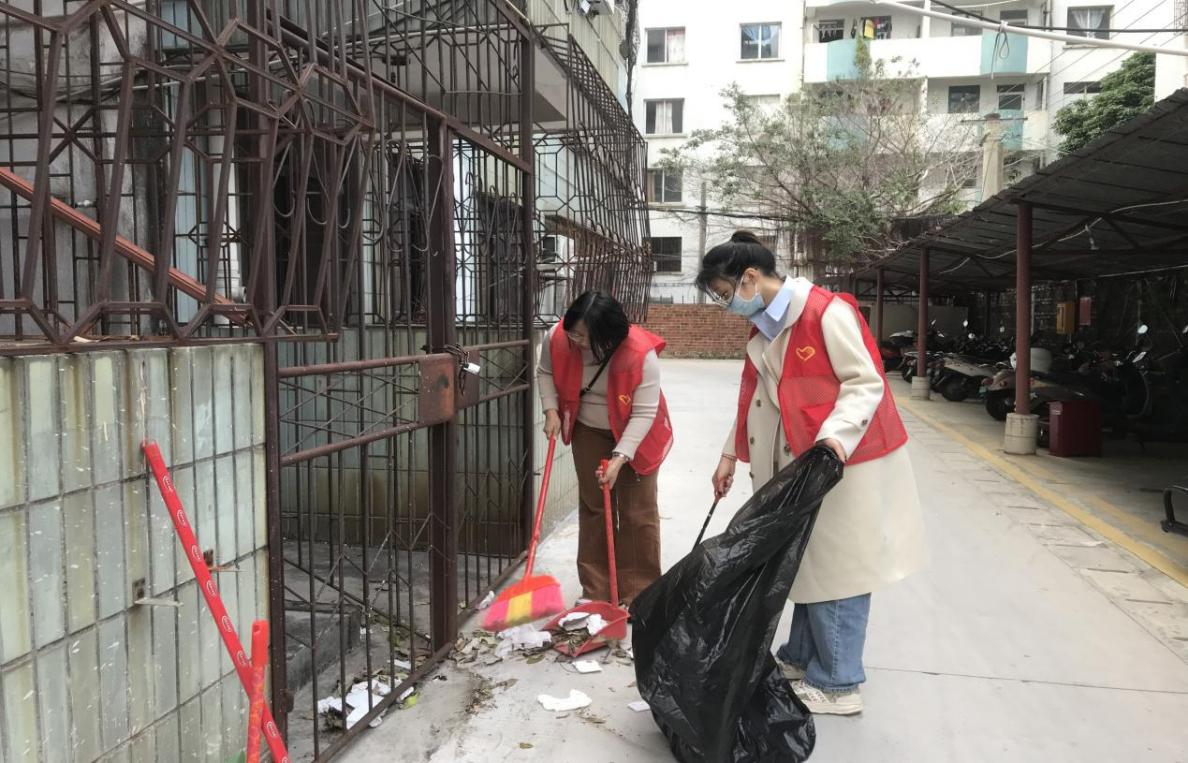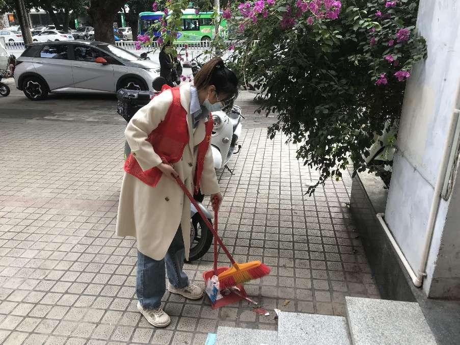 活动中,志愿者们身穿红色马甲,手持扫帚、铲子等工具积极投身清扫路面垃圾、捡拾绿化带中的废弃物,全面清理居民日常出行随手丢弃的纸屑、烟头、食品包装袋,打扫楼道墙角等卫生死角等工作。与此同时,志愿者们积极劝导吸烟人员不要乱扔烟头,提醒居民将生活垃圾要统一投放在垃圾桶。大家从细微处着手,争做环境保护的践行者。