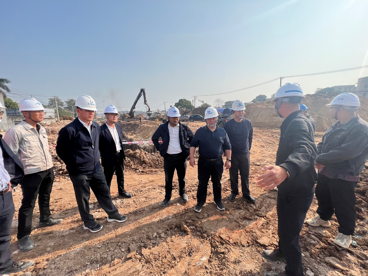 公司领导在北海市铁山港区滨海大道现场了解项目建设情况