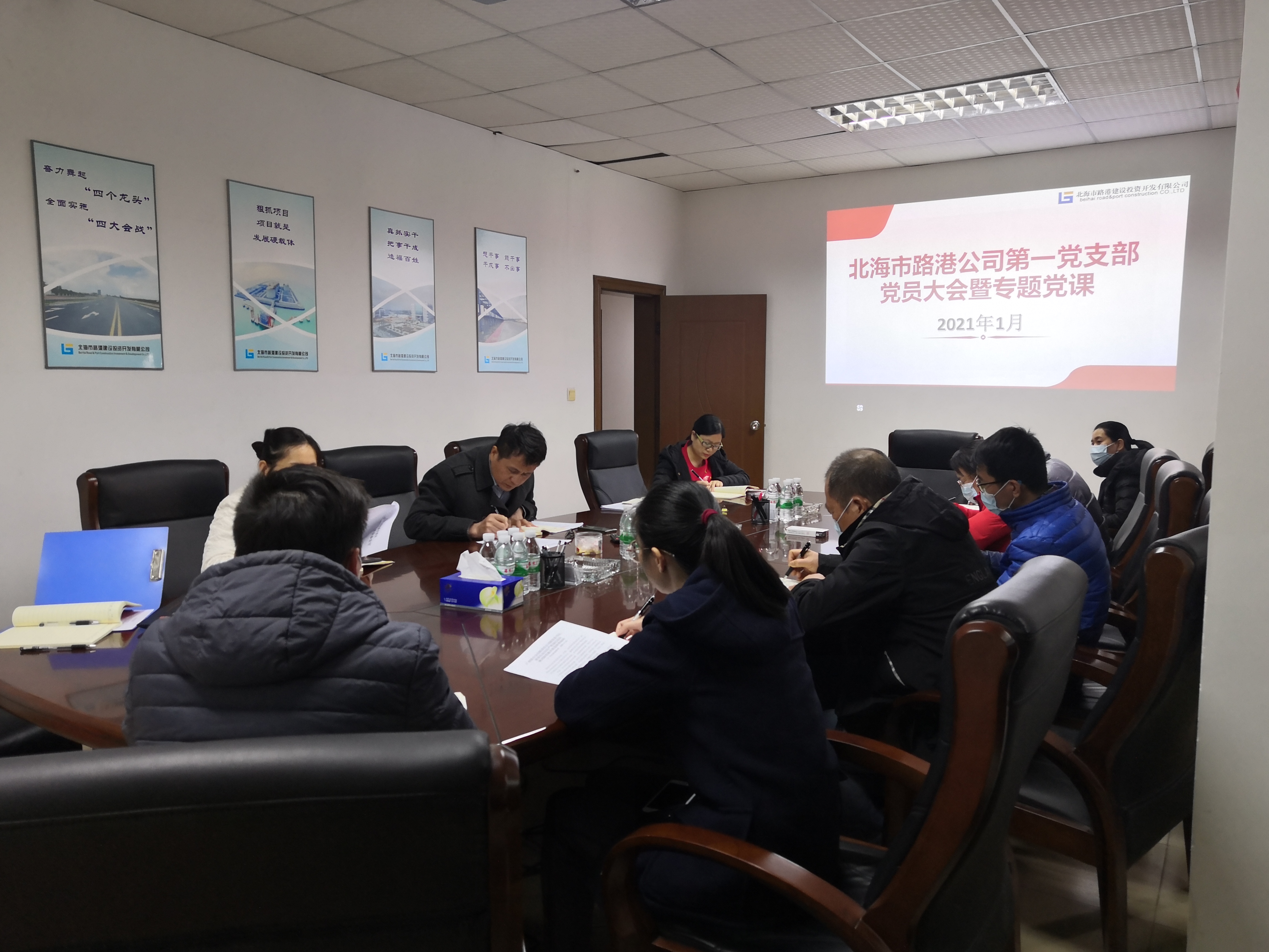 党总支书记罗远鹏充分发挥领学促学作用,带头系统学习全会精神,结合《中国共产党北海市第十一届委员会第十一次全体会议公报》中提及的第十四个五年规划和二〇三五年远景目标,深刻分析公司所处行业领域的发展前景规划,并对全公司学习贯彻落实全会精神进行安排部署。