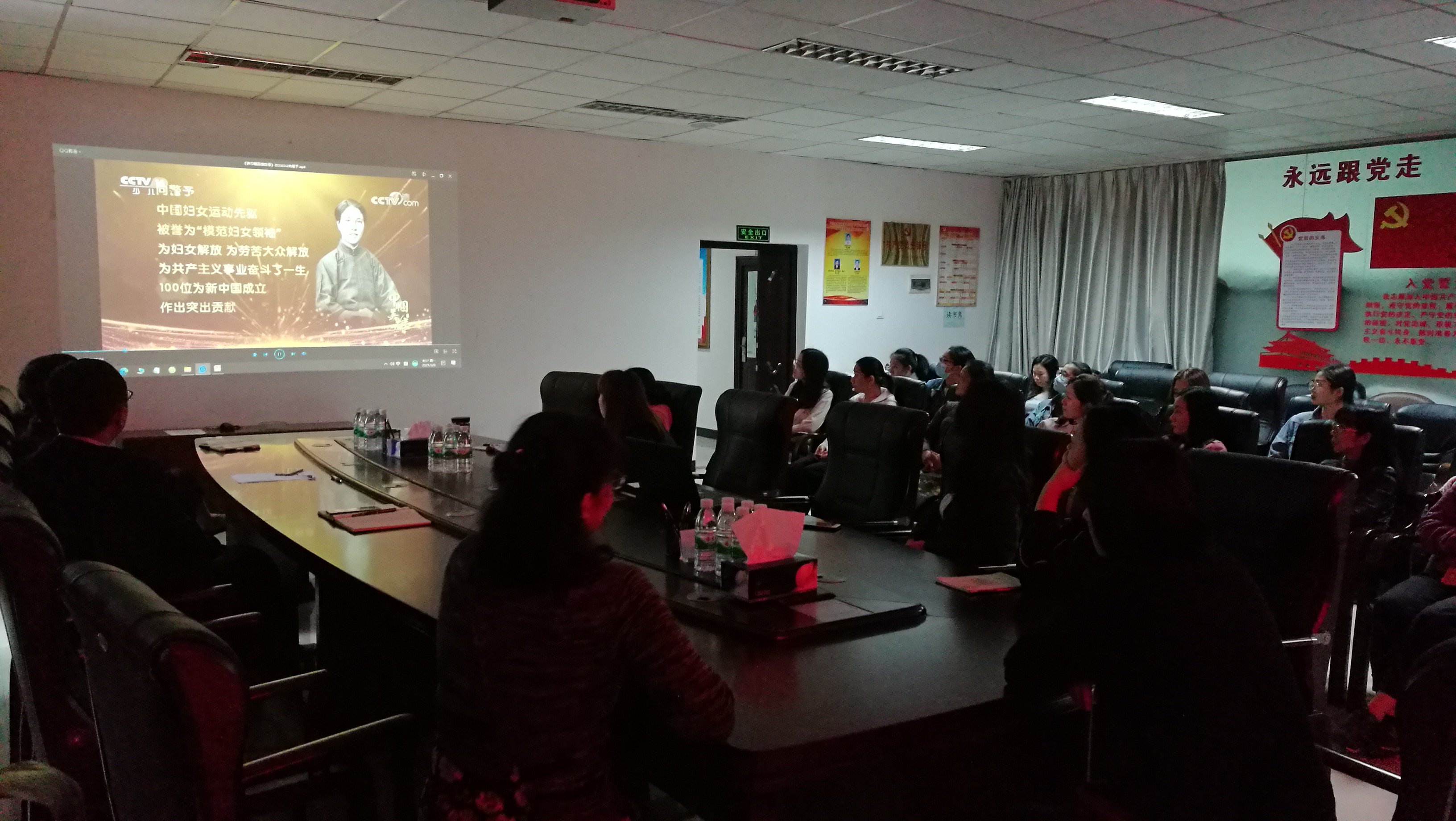 随后,为庆祝中国共产党成立100周年,引导广大妇女在忆党恩、感党恩中进一步坚定听党话、跟党走的理想信念,女职工们一起学习党史,观看《讲巾帼英雄故事》、《爱党爱国爱中华》清廉家风故事短片等。