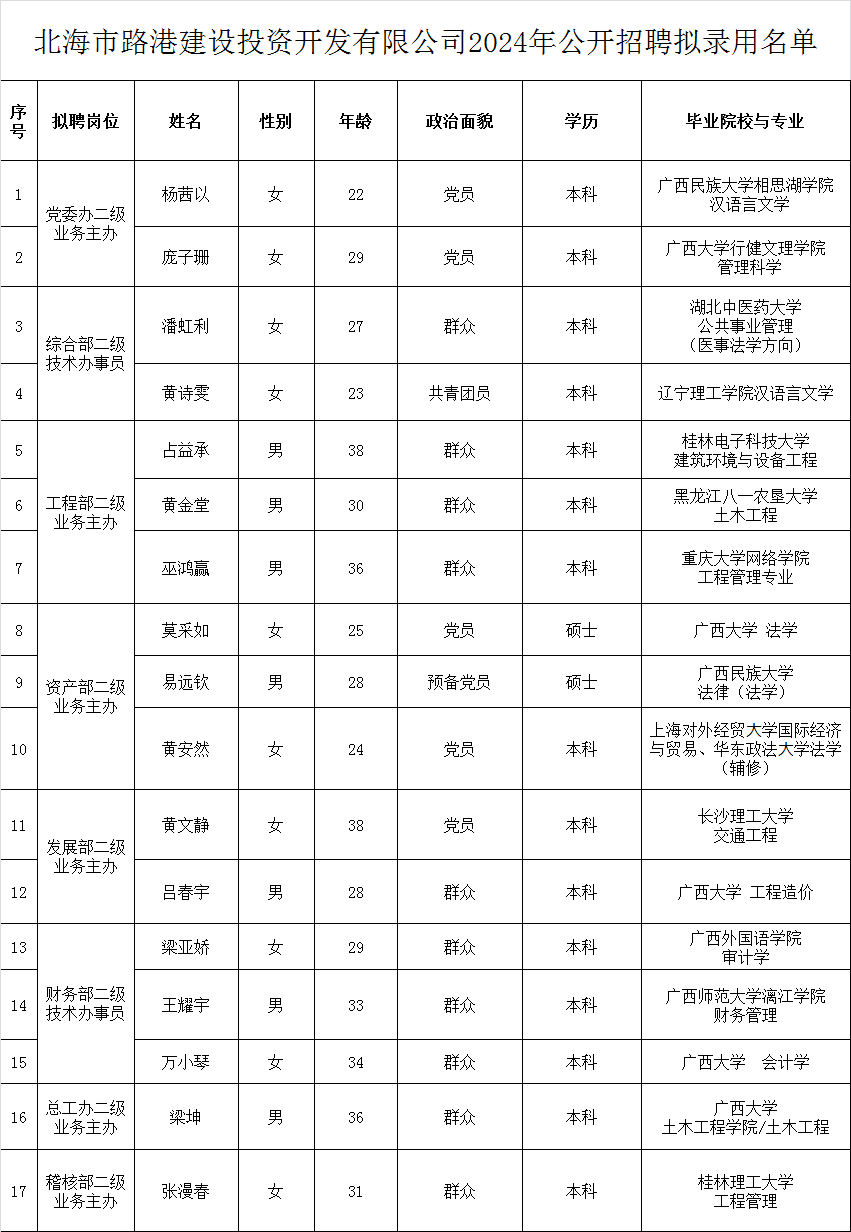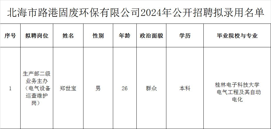 3.北海市365英国上市固废环保有限公司2024年公开招聘拟录用名单